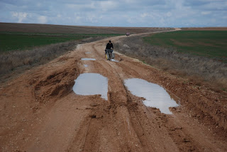 Nas rectas era impossivel desenvolver a mais de 8km/h, por isso atamos umas cordas à bicicleta do Tiago, e assim prosseguimos.